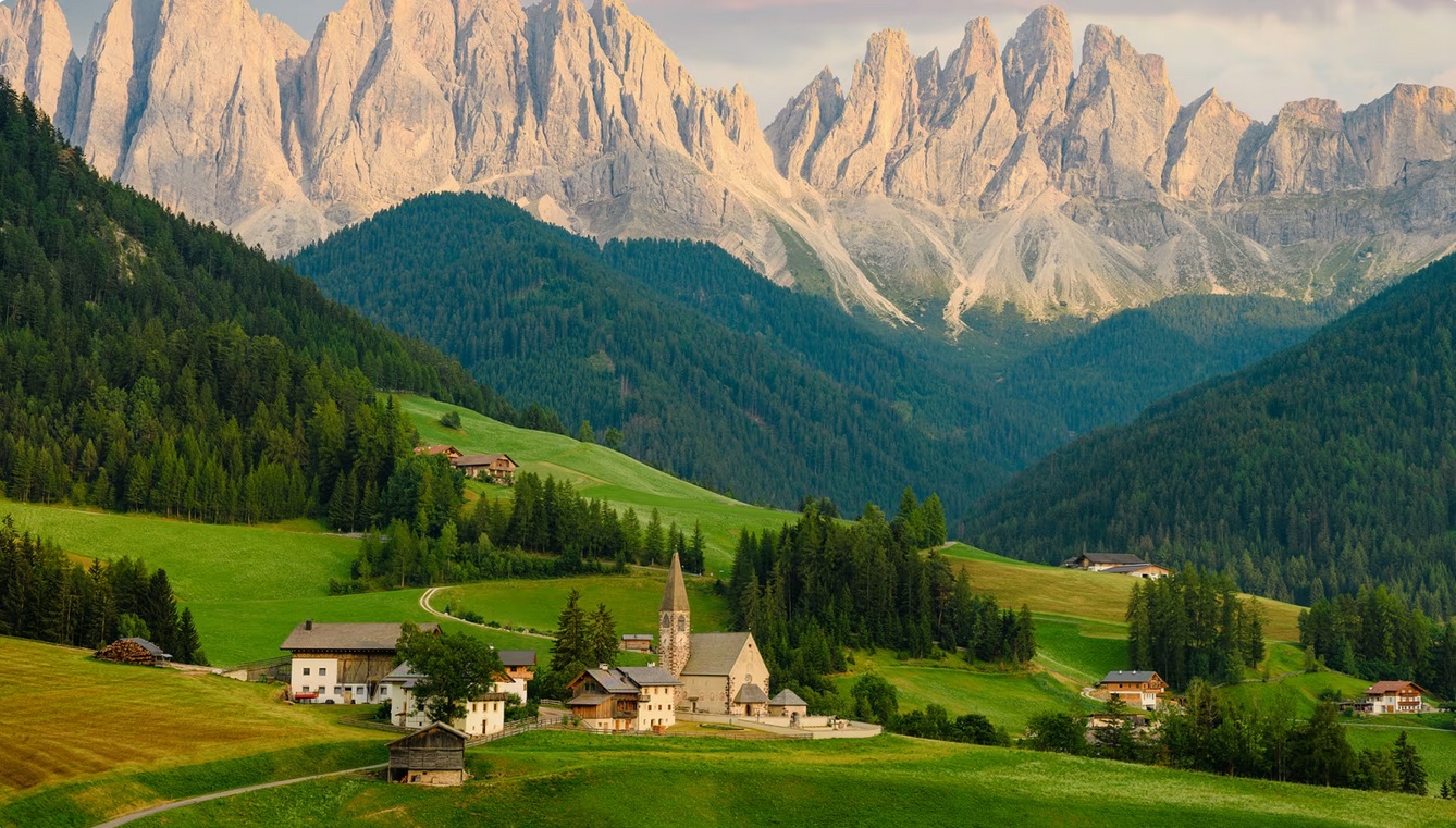 I’ve just described Santa Maddalena to a tee. This tiny, picturesque gathering, nestled on the eastern slopes of the Dolomite Mountains in Northern Italy, is the stuff of postcards and jigsaw puzzles. There’s not much to it but the setting speaks for itself. And the little church – St. John in Ranui – seems perfectly placed beside the more nondescript buildings. Santa Maddalena is so attractive it draws 600 visitors a day during the peak travel season.