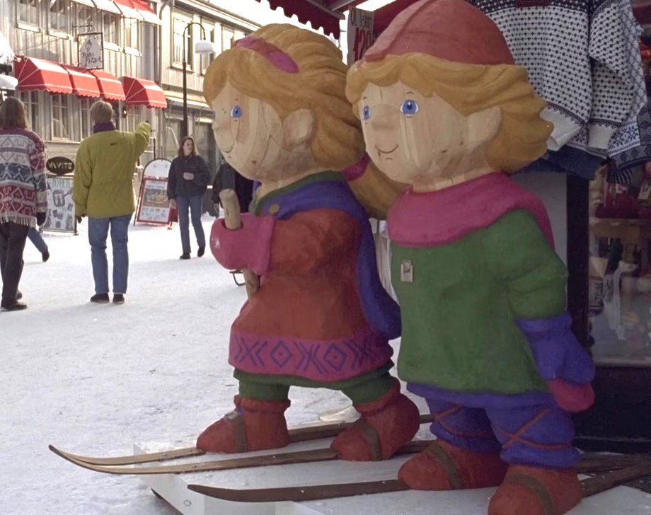 Haakon and Kristin – full-sized figures from Norwegian history – hosted the 1994 Winter Games in Lillehammer. Sorry, but doesn’t it look like Haak and Kris just want to come at you on their skis? The stuff of horror movies.