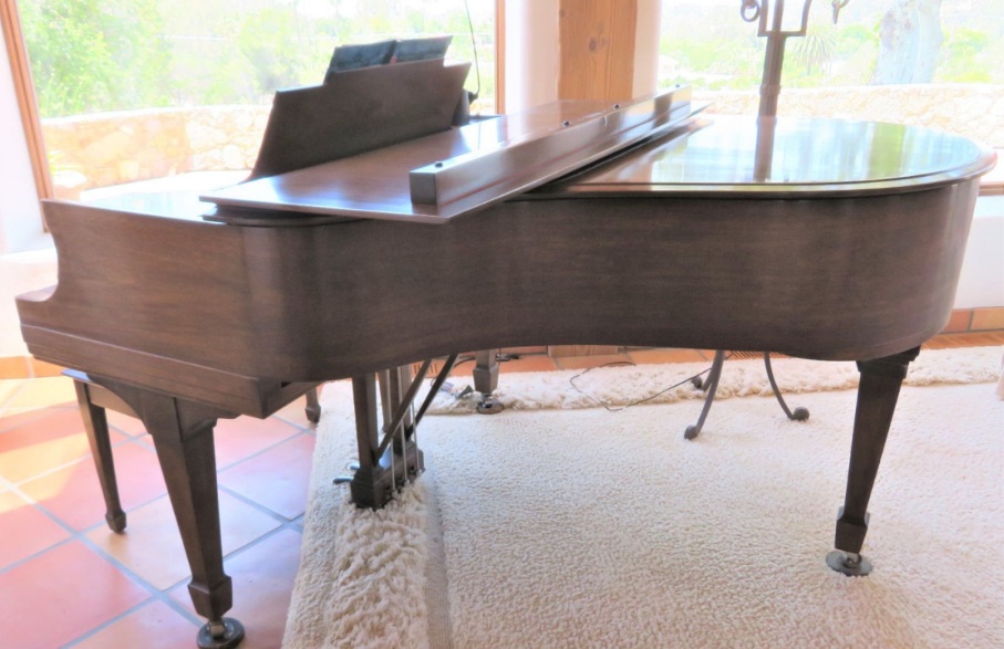 Four years ago also brought me, unexpectedly, my first real piano.  My daughter and her family bought a nearby house, where the previous owners left an old, upright Baldwin behind.  I found it very sad: a lonely, neglected piano, probably not played for years, inevitably out of tune and in need of repair.  So I came to its rescue, hiring a piano mover to get it to our house, and a tuner to restore it to fighting shape.  Today that piano sits in our living room.  It doesn’t match any of our furniture.  It doesn’t get played as often as it should.  But it warms my heart just to see it there, and that’s all that really matters.