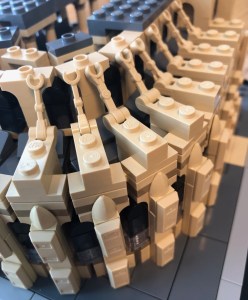 Today we “leveled the praying field” 🙂 Bags 19, 20, and 21… of 34 bags of pieces, brought the height of the nave to virtually the same as the chancel. It’s safe to say the lion’s share of the remaining pieces will be (tiny and) focused on building the roof structure and west end bell towers.