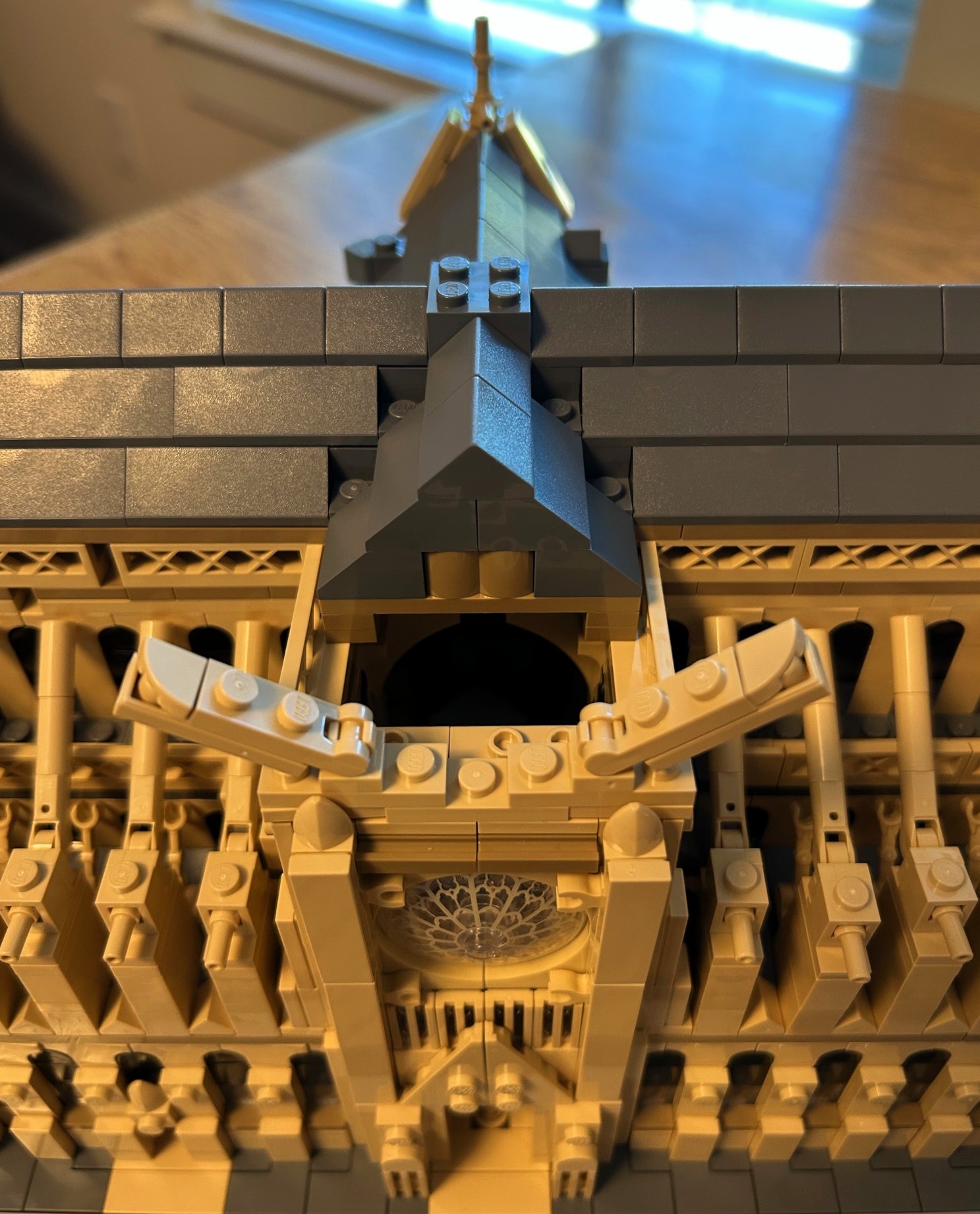 The service is rapidly coming to a close. I sense the inevitable benediction and dismissal of the congregation as our work on LEGO Notre-Dame de Paris wraps up. The remaining pieces in Bag 28 brought the cathedral’s bell towers to an even (if not finished) height, while Bags 29 and 30 – of 34 bags of pieces – added more detail to those towers, as well as some elegant structure above the transept doorways.