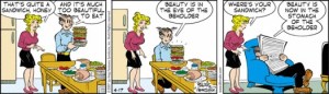 Blondie is the trend-setting American rock band from the 1970’s. A blondie is also a rich vanilla dessert bar. But just for today, Blondie is the newspaper comic strip that, remarkably, still runs after 92 years. Blondie is the female lead and Dagwood is her food-loving husband. Which brings me to today’s topic. A Dagwood is a tall, multi-layered sandwich… the perfect image for my travel nightmare from last Friday.