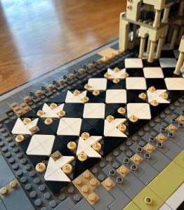 In early January you walked into my blog, took a seat in a pew up front, and witnessed the longest church service in the history of France. From the first LEGO piece I laid as the cornerstone – a now-hidden flat black rectangle – to this week’s placement of the oversized finial on top of the roof, you watched – for almost two hundred years – the slow, somewhat steady rise of Notre-Dame de Paris. Time sure flies, doesn’t it? But at last we’ve made it to the end (or at least, the year 1345), where the pastor dismisses the congregation with a “Go in peace!”(which sounds much better than “Go in pieces!”)
