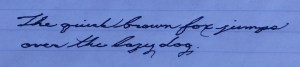 Here’s an interesting experiment for you bloggers to consider. Write your next post in cursive before you take to the keyboard. See if your “voice” doesn’t sound a little more thoughtful than the one from the keyboard. Now here’s an experiment for me. What if I were to spend ten minutes a day trying to restore my handwriting? Would it eventually be described as “beautiful” once again?