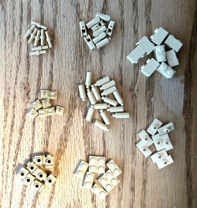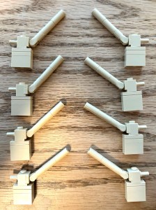 Now for the strange stuff. I assembled a flat L-shaped piece on top of another flat L-shaped piece, only to discover they weren’t supposed to go together that way. No amount of fingernail dexterity could pry those two apart. Fortunately I found myself in the kitchen. Sharp knives everywhere! It took a careful pry without cutting myself but I finally got those two unmarried. Never let it be said building LEGO models isn’t a dangerous sport.
