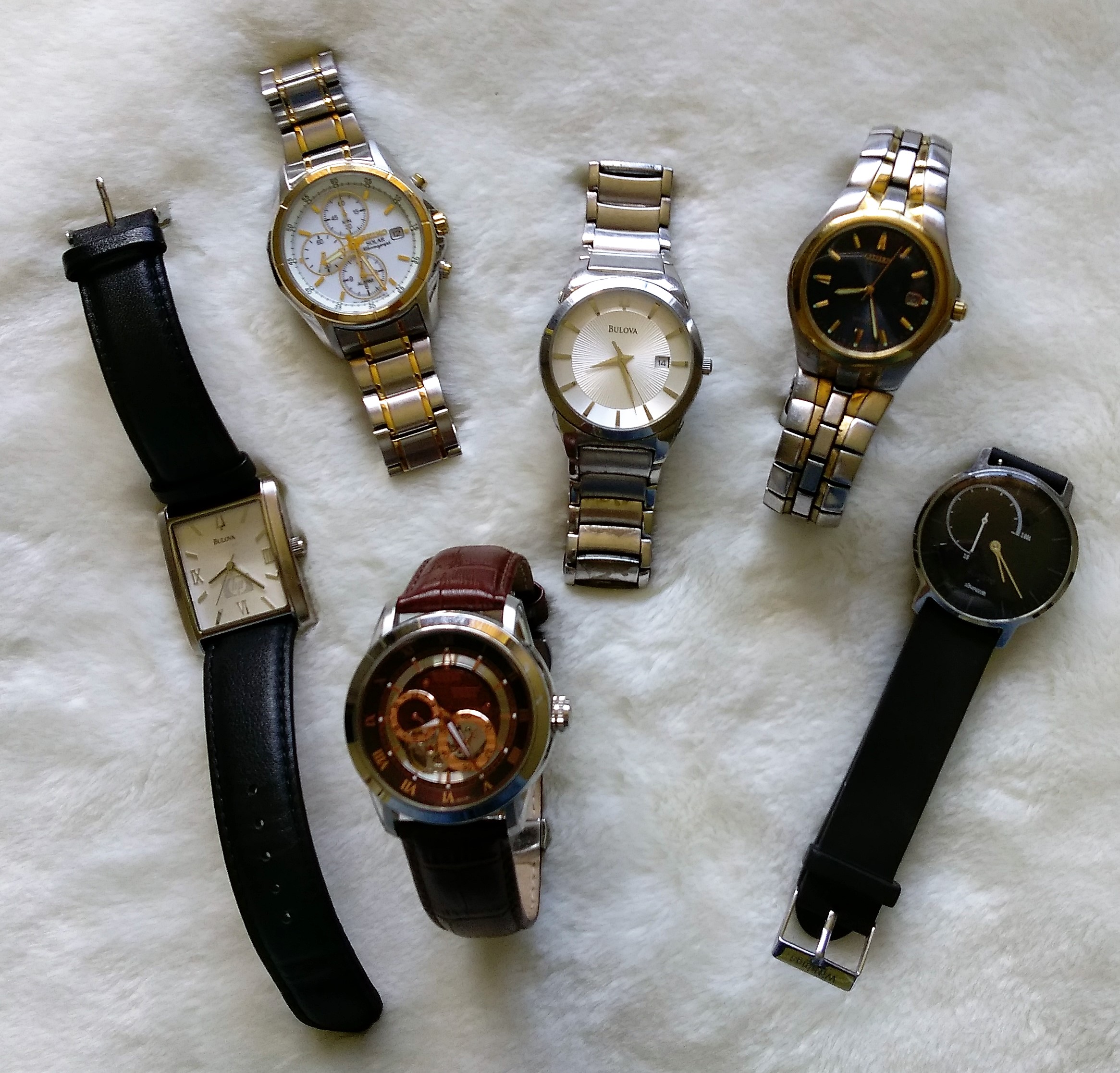 [Author’s Note: I’m a little unnerved to see each of my wristwatches in the above photos is stopped at the exact… same… time. I didn’t do this! Why would I do this? Either someone’s been playing in my watch drawer or my house is haunted. Maybe both.]