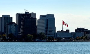 Here’s something I probably learned in middle school and promptly forgot: the border between Canada and the U.S. runs right through the middle of Lake Erie (and the Detroit River). It’s as if Americans and Canucks had a long drawn-out discussion about who deserved the lake more, and then clinked glasses of Budweiser and Molson with, “Okay, you get half and we get half”. The same thing happened with three of the other four Great Lakes (America somehow got all of Lake Michigan) and that’s why – at least in Detroit – Canada lies to the south.